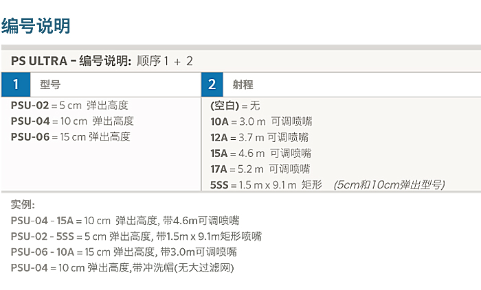5cm、10cm和15cm弹出型可选,出厂可预装不同射程的Pro系列可调角度喷嘴。喷洒边界准确,避免喷洒到非灌溉区;角度调节方便;选择不同喷嘴均有匹配的灌溉强度;喷头体小巧玲珑、顶部暴露尺寸小。同时,PS Ultra喷头芯为分体式棘齿结构,可靠耐用;阳螺纹喷头升降体,可安装所有亨特标准阴螺纹喷嘴;预装喷嘴型有超大过滤网,有效防止污物进入(10cm和15cm弹出型为双过滤网)。另外,PS Ultra 5cm和10cm弹出型的内芯也可用于旧款PS散射喷头上,便于旧系统的升级。用户可订购预装喷嘴型,也可订购预装冲洗帽型,灵活方便,适应范围广。