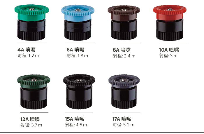 相匹配的喷灌强度从 2.4m~5.2m 射程均可 6A 射程: 1.8 m