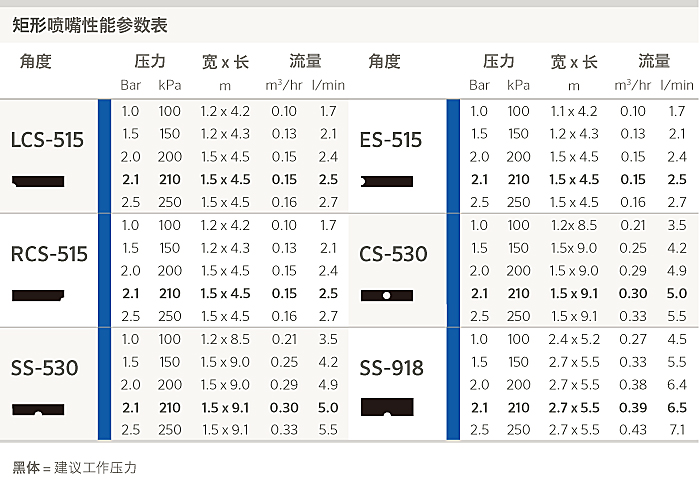 • 该系列型号喷嘴是专门用于异形角度喷洒的喷嘴