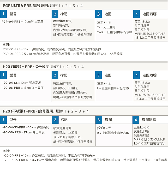 质保期: 5年 ►喷嘴仰角:标准= 25度, 低仰角= 13度