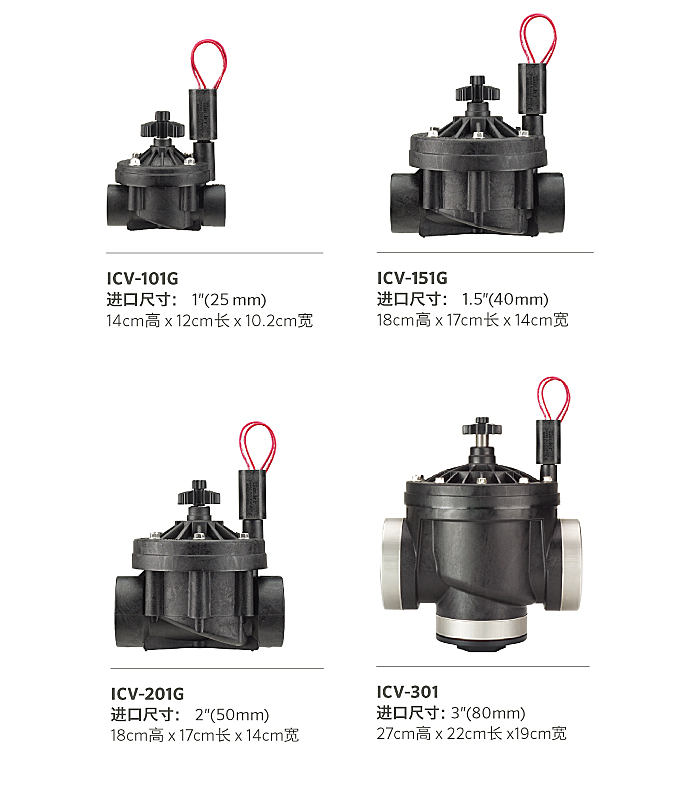 允许通过小流量,可用于亨特微灌系统 ICV-301: 34 to 68 m3/h
