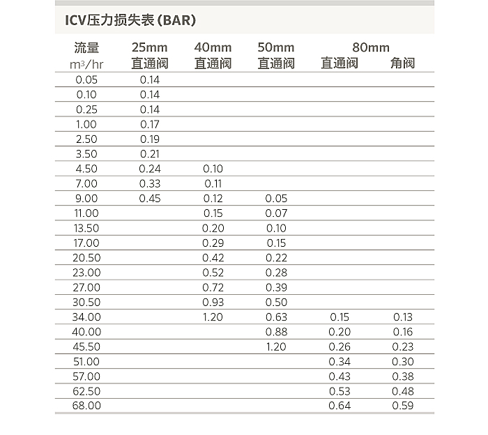 确保在任何系统中都能可靠运行 流量:ICV-101G: 0.06 to 9 m3/h