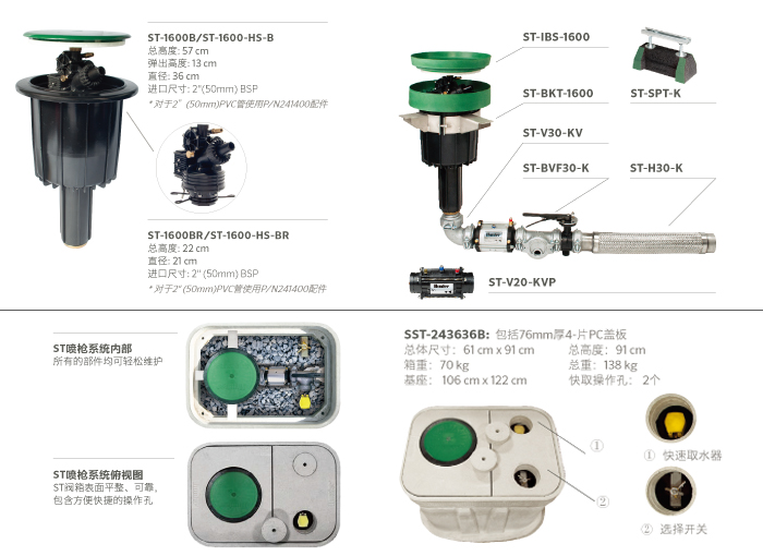 喷嘴仰角:22.5° 可选IBS橡胶保护盖套件 (ST-1600-B / ST-1600-HSB)