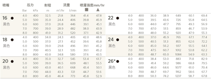 出厂标配喷嘴:#20 (高速型,工作压力8Bars时,180°喷洒)