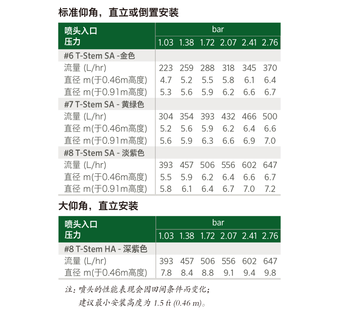还有大仰角的T-stem直立安装型,还有大仰角的t-stem直立安装型,提供大射程的喷洒。