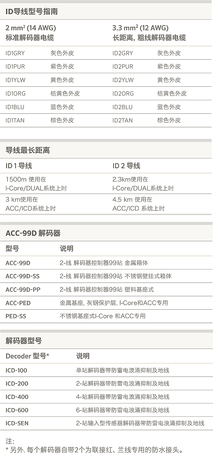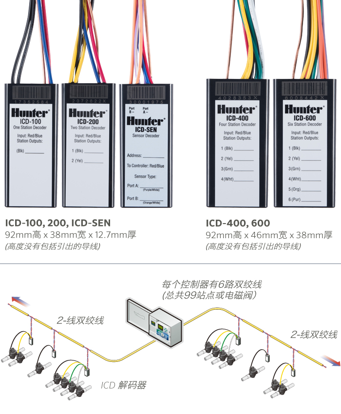 水泵/主阀输出可联接到解码器 可连接双向监测传感器 (ICD-SEN)