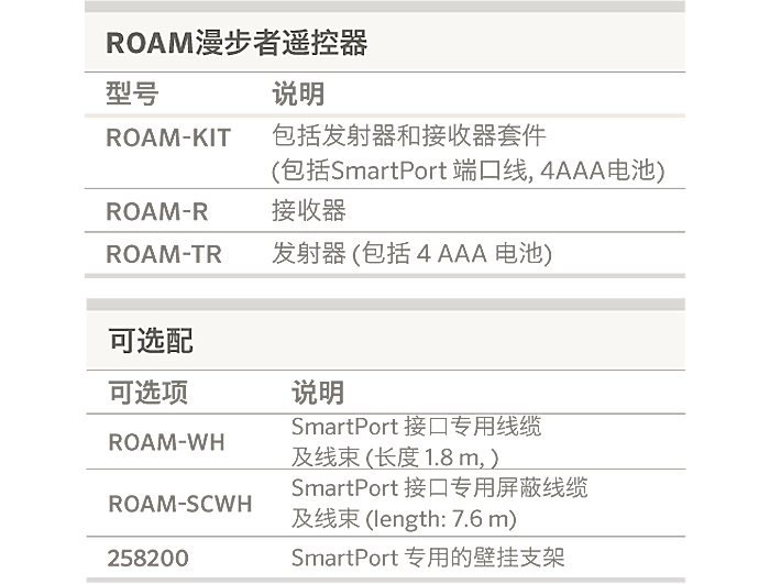 PCC, I-Core® 和ACC控制器配套使用 发射器电源: 4 节 AAA 五号电池 (已配)