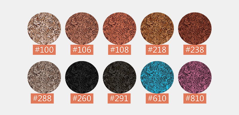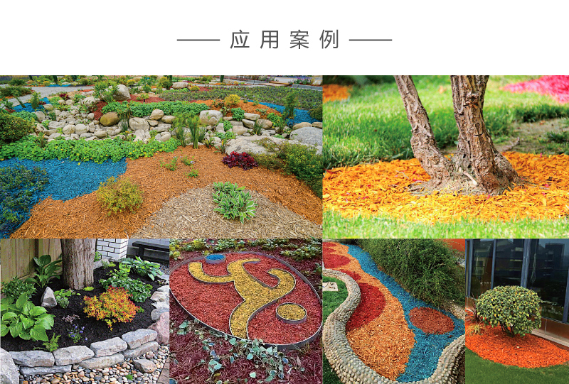 木趣是一种新型城市地表覆盖物,由纯天然材料生产加工而成,分为本色和彩色。