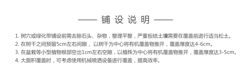 具有改善土壤环境,增加土壤肥力,调节土壤PH值,保持土壤水分,抑制造杂草,阻隔吸附扬尘,有效改善PM2.5等作用。