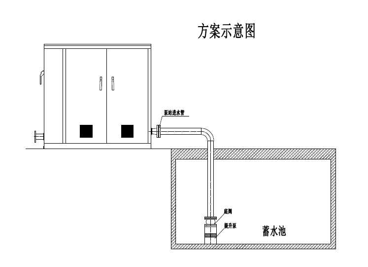 可根据现场实际情况配置水上式底阀或水下式底阀,从而使泵站实现对水资源最大限度的利用,当水源距离泵站高差超过 2米以上时,可选配底部提水泵,通过程序控制对水泵进行联动,从而加大泵站的使用范围